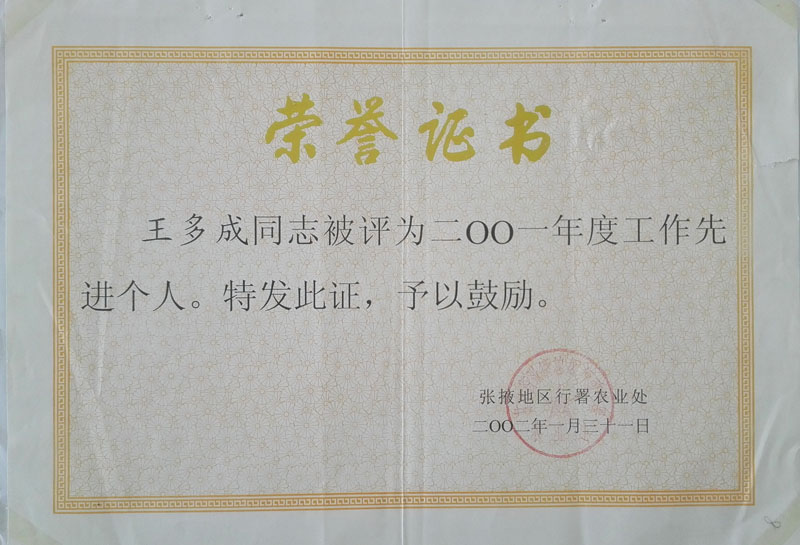 2001年度工作先進(jìn)個(gè)人